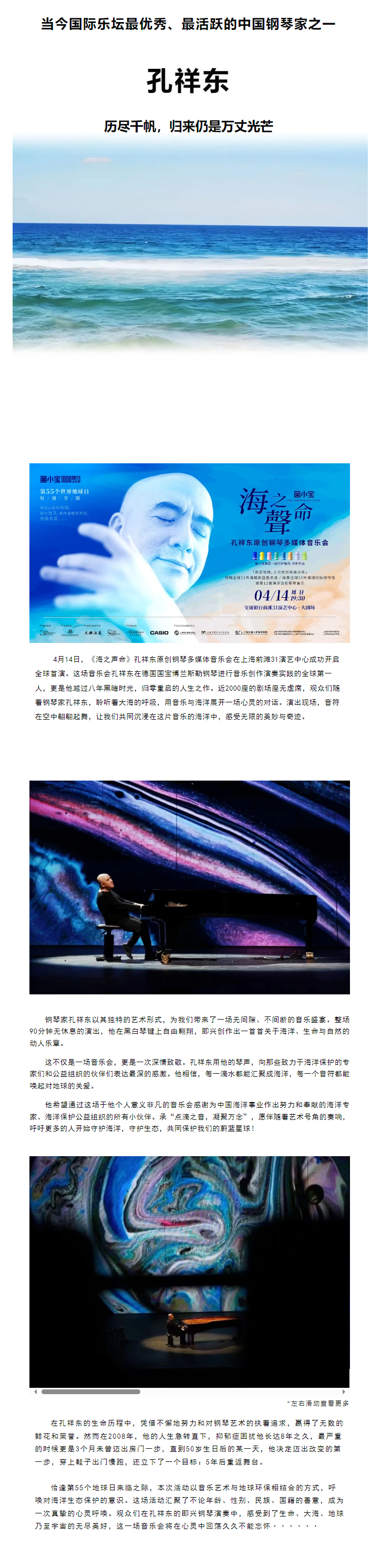 世界首演 | 鋼琴大師孔祥東傾情呈現(xiàn)《海之聲命》,音樂與影像交織的視聽盛宴完美落幕!