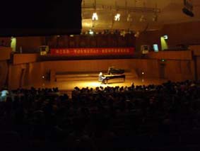 素有“六朝古都”之稱(chēng)的南京,非常吸引第一次來(lái)中國(guó)的鋼琴家陳佩雯女士,他們?cè)谝魳?lè)會(huì)開(kāi)始之前還參觀了南京非常具有特色的景點(diǎn),直到音樂(lè)會(huì)開(kāi)始之前,他們還在細(xì)細(xì)回味并討論著…… 2010年8月6日晚19:30,亞歷山大·帕雷中國(guó)巡演最后一站在南京音樂(lè)學(xué)院音樂(lè)廳正式舉行,觀眾們也是早早入場(chǎng)等候著。都期待一場(chǎng)精彩、不同尋常的音樂(lè)會(huì)。尤其是德國(guó)國(guó)寶博蘭斯勒鋼琴的黃金音色一直未能親眼所見(jiàn),親耳所聽(tīng)。這次難得有機(jī)會(huì)使得大家期待變得無(wú)比神圣,亞歷山大.帕雷似乎也感受到了大家的熱情,南京作為他中國(guó)巡演的最后一站,讓他似乎有種難舍之情,這種情感他無(wú)法用言語(yǔ)表達(dá),但是,在演奏中他將這種情感表現(xiàn)得淋漓盡致,觀眾們一次次的“安可”是他最好的證明!