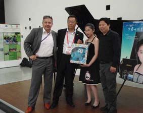 羅維在現(xiàn)場演奏了《莫扎特330奏鳴曲》、《瀏陽河》、《拉赫瑪尼諾夫》、《愛之喜悅愛之憂傷》等多首曲目。優(yōu)美的旋律、德國國寶-博蘭斯勒鋼琴黃金般的音色,讓現(xiàn)場觀眾大飽耳福?,F(xiàn)場座無虛席,絡(luò)繹進館的游客都被這美妙的琴聲深深吸引,駐足停留欣賞。世博會主題館部章克勤部長、主題館設(shè)計德國設(shè)計公司總經(jīng)理雷曼先生及博蘭斯勒鋼琴中國區(qū)總經(jīng)理方陽先生也到場欣賞了羅維的精彩表演。演出結(jié)束后章克勤部長送給羅維小朋友一個世博吉祥物-海寶作為六一兒童節(jié)的禮物并祝演出成功。