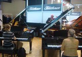 2010年本屆法蘭克福樂(lè)器展會(huì)最大的亮點(diǎn)是歐洲鋼琴企業(yè)在 BVK(德國(guó)鋼琴制造業(yè)協(xié)會(huì))的領(lǐng)導(dǎo)下專門(mén)成立了一個(gè)新館:歐洲 鋼琴館。只有真正的歐洲鋼琴才可以在“歐洲鋼琴館”里展示。素 有德國(guó)國(guó)寶之稱的博蘭斯勒鋼琴的展位成為本次展會(huì)歐洲鋼琴館中 的魁首,是館中最大的展位,驚艷全場(chǎng)。到場(chǎng)的博蘭斯勒鋼琴公司 總裁博思進(jìn)博士還接受了德國(guó)國(guó)家電視臺(tái)的采訪。