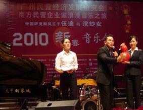 南國的三月,已聞到春天溫暖氣息,春意綠滿枝頭,國內(nèi)首次 以民營企業(yè)家為主題的浪漫音樂之旅就在廣州的鳥語花香里琴聲悠 揚(yáng)。為使得此次音樂之旅更加浪漫美妙,鋼琴支持商大千鋼琴城甚 至出動(dòng)了他們的鎮(zhèn)店之寶——有鋼琴中的“勞斯萊斯”美譽(yù)的德國 國寶-博蘭斯勒鋼琴與中國薩克斯風(fēng)王子伍迪領(lǐng)軍張藝謀打造的“奧 運(yùn)寶貝”中國民樂浣紗女組合來了一次激情的碰撞:動(dòng)人的音樂、 激揚(yáng)的舞蹈、絢麗的服飾,一場(chǎng)中國傳統(tǒng)音樂與西洋音樂的邂逅, 慈善的愛心將帶給民營企業(yè)家新春最有意義和最浪漫的體驗(yàn)。晚會(huì) 現(xiàn)場(chǎng)有廣東省政協(xié)副主席、省婦聯(lián)主席溫蘭子,原廣東省政協(xié)副主 席石安海,原廣州市副市長劉念祖,原廣州市副市長陳綺綺,原廣 州市副市長姚蓉賓,廣東省社會(huì)科學(xué)院院長梁桂全,廣東省知識(shí)產(chǎn) 權(quán)局局長陶凱元,廣東省教育廳巡視員李小魯,廣東省中小企業(yè)局 局長張文獻(xiàn),廣東省委辦公廳副巡視員陳星智,廣東省婦聯(lián)副巡視 員張麗玲,廣東省社科聯(lián)副主席省文化學(xué)會(huì)會(huì)長李明華博士,廣東 省工商聯(lián)副主席李陽春,廣州市社科聯(lián)主席顧澗清,廣州市工商聯(lián) 副主席吳永洋,廣州市體育局副局長方達(dá)兒,廣州市體育局副局長 關(guān)渭貞,廣東省商業(yè)聯(lián)合會(huì)常務(wù)副會(huì)長袁偉英女士,增城市副市長 葉鴻,廣州民營經(jīng)濟(jì)發(fā)展研究會(huì)創(chuàng)會(huì)會(huì)長解聘如、王銳,執(zhí)行會(huì)長 黃學(xué)明,常務(wù)副會(huì)長彭澎以及有關(guān)部門的領(lǐng)導(dǎo)蒞臨觀摩。并且該活 動(dòng)從社會(huì)責(zé)任感和公益角度出發(fā),音樂會(huì)加入了一個(gè)特別有意義的 “溫暖行動(dòng)”拍賣單元——“救助一位孤兒,改寫一個(gè)人生”。其 由廣東省婦女聯(lián)合會(huì)、廣東省婦女兒童基金會(huì)、廣東省兒童福利會(huì) 共同組織的一項(xiàng)極具社會(huì)意義的活動(dòng)。而博蘭斯勒鋼琴也為能在如 此重大意義的活動(dòng)上獻(xiàn)上自己的“黃金音色”而深感榮幸!