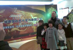 整個(gè)博蘭斯勒展區(qū)在經(jīng)典“飛天”圖案背景的烘托下,顯得大 氣磅礴、金碧輝煌,烘托出了博蘭斯勒鋼琴享有“黃金音色”之稱(chēng) 的美譽(yù),并吸引了眾多人士前來(lái)參觀,甚至有其它世界名品的參展 商與展會(huì)工作人員都特地前來(lái)展區(qū)一睹博蘭斯勒鋼琴的奢華風(fēng)范與 典雅氣質(zhì)。其中,價(jià)值288.8萬(wàn)并全球僅限一臺(tái)的博蘭斯勒 fisherArt系列三角鋼琴更是成為了全場(chǎng)的超級(jí)明星。它經(jīng)典大氣 的外觀、精致絕倫的做工、無(wú)與倫比的“黃金音色”以及油畫(huà)大師 獨(dú)一無(wú)二的靈感創(chuàng)作,無(wú)一不使人驚嘆。不少觀眾得知它的到來(lái)后 ,專(zhuān)程趕來(lái)與其合影留念,近距離感受這個(gè)被稱(chēng)為鋼琴中的“勞斯 萊斯”,歐洲皇室貴族的超級(jí)奢侈品——德國(guó)國(guó)寶博蘭斯勒鋼琴。 19日,展會(huì)舉行到第三天時(shí),由5名小學(xué)生舉行的現(xiàn)場(chǎng)鋼琴演奏表 演,更是將整個(gè)會(huì)場(chǎng)氣氛推至頂峰,其中兩位小朋友的一曲四手聯(lián) 彈,更是轟動(dòng)全場(chǎng)。前來(lái)參觀欣賞的家長(zhǎng)及學(xué)生無(wú)不嘖嘖稱(chēng)贊,同 時(shí)對(duì)博蘭斯勒及其旗下品牌歐米勒、塞勒都表現(xiàn)出了極大的興趣, 不少家長(zhǎng)還紛紛表示要去當(dāng)?shù)亟?jīng)銷(xiāo)商?hào)|莞樂(lè)博琴行的店中做進(jìn)一步 的了解挑選。