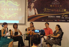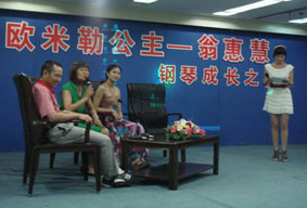 2009年7-8月,德國(guó)博蘭斯勒基金會(huì)、博蘭斯勒鋼琴(中國(guó) )有限公司聯(lián)合推出“放飛理想,成就鋼琴之夢(mèng)”的德中同行歐米 勒鋼琴公開賽冠軍得主、歐米勒公主翁惠慧成長(zhǎng)之旅訪談錄。翁惠 慧是一位旅奧青年鋼琴家,2008年專程從奧地利飛回國(guó)參加德中 同 行-歐米勒鋼琴公開賽,并一舉奪得冠軍??赡艽蠹視?huì)跟我們一 樣認(rèn)為歐米勒公主翁惠慧像趙胤胤、郎朗一樣在鋼琴方面是一個(gè)天 才。其實(shí)不然,翁惠慧是一位在學(xué)琴的過(guò)程中曾經(jīng)給老師“判過(guò)死 刑”的完全不適合學(xué)鋼琴的學(xué)生,更不用說(shuō)是走專業(yè)道路、成為鋼 琴家了!因?yàn)槲袒莼鄣氖种笚l件不好,如果走專業(yè)的道路,她是彈 不了大的曲目,所以幾乎所有的老師都建議她不要將鋼琴定為專業(yè) 的目標(biāo)。但,翁惠慧憑著自己的努力、恩師的辛勤培養(yǎng)才有了今天 的成功。本次訪談錄的主要分小時(shí)候的惠慧如何被父母安排去學(xué)鋼 琴、惠慧在走專業(yè)的道路的辛酸以及世界舞臺(tái)上惠慧的表現(xiàn)三個(gè)部 分來(lái)講述一個(gè)不同尋常的鋼琴家傳奇的成長(zhǎng)歷程,讓現(xiàn)在正在學(xué)習(xí) 或是將要學(xué)習(xí)的鋼琴的琴童及其家長(zhǎng)在學(xué)習(xí)或教育方面取得些寶貴 的經(jīng)驗(yàn),并通過(guò)這個(gè)訪談錄來(lái)激發(fā)琴童的學(xué)琴熱情。本次“放飛理 想 成就鋼琴之夢(mèng)”的歐米勒公主翁惠惠慧訪談錄走過(guò)重慶、山東、 河南、廣東等站均引起當(dāng)?shù)厍偻瘜W(xué)琴的高潮。許多家長(zhǎng)及小朋友紛 紛向歐米勒公主“取經(jīng)”:“怎么才能學(xué)好鋼琴?”“遇到難題該 怎么處理?”“如何處理好學(xué)琴與學(xué)習(xí)”等等,歐米勒公主都一一 給予解答并建議琴童們要?jiǎng)谝萁Y(jié)合。本次訪談錄也有幸邀請(qǐng)到翁惠 慧的媽媽與大家一起揭密惠慧小時(shí)候的一些趣事,并與家長(zhǎng)們一起 分享教育心得。更有家長(zhǎng)向翁媽媽請(qǐng)教:“孩子不愿練琴的時(shí)候, 該怎么辦?”翁媽媽也非常幽默的送給現(xiàn)場(chǎng)的琴童家長(zhǎng)們八字真經(jīng) :“軟硬兼施、獎(jiǎng)懲分明”。在重慶站及廣東站的訪談錄中,當(dāng)?shù)?承辦方在訪談嫦娥現(xiàn)場(chǎng)還請(qǐng)來(lái)了當(dāng)?shù)氐奶┒芳?jí)鋼琴教授以及鋼琴協(xié) 會(huì)會(huì)長(zhǎng)與大家一起分享鋼琴教育問(wèn)題,讓琴童及家長(zhǎng)們收獲頗多, 也為家長(zhǎng)教育琴童提供寶貴的經(jīng)驗(yàn)!