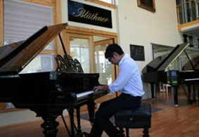 2009年7月27日,趙胤胤來到博蘭斯勒工廠,開始了博蘭斯 勒神奇之旅。一到目的地他就被博蘭斯勒明亮而高雅的玻璃展廳所 吸引,大師在展廳外注目觀望許久。隨后穿過博蘭斯勒的名人廊進(jìn) 入展廳參觀,長長的名人廊展示了博蘭斯勒150多年的輝煌,名人 廊上出再現(xiàn)的名人有:著名鋼琴家魯賓斯坦大師、著名鋼琴家、作 曲家李斯特大師、還有目前涌現(xiàn)在鋼琴舞臺(tái)的世界頂級(jí)鋼琴家阿圖 ·皮薩羅、亞歷山大·帕雷等等。在名人廊前,趙胤胤久久凝視著 魯賓斯坦大師,細(xì)細(xì)的琢磨著他給博蘭斯勒的評(píng)語:“博蘭斯勒是 我見過聲音最美麗的鋼琴”。在玻璃展廳里,總裁博思進(jìn)博士為其 介紹展廳內(nèi)所陳列的博蘭斯勒三角鋼琴,其中一架155周年特別紀(jì) 念版三角鋼琴深深吸引了他,這款鋼琴是特別紀(jì)念創(chuàng)始人尤利烏斯 ·博蘭斯勒而設(shè)計(jì)的,后人對(duì)先人所取得的偉績和貢獻(xiàn)的崇拜之情 都凝聚在這架琴上,并將重要獎(jiǎng)項(xiàng)及徽章鑄在鋼板上,是一臺(tái)經(jīng)典 之作!大師也忍不住現(xiàn)場彈奏起來。精美的外形,黃金般的音色, 考究的譜架都使大師深深著迷。
