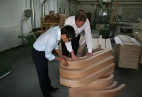 接著,在總裁的陪同下參觀了博蘭斯勒工廠,首先大師經(jīng)過 的是木材加工制作間。從木材的存放到干燥、穩(wěn)定處理再到成形; 最后形成我們博蘭斯勒獨(dú)一無二的背架、音板及外殼。博蘭斯勒共 鳴弦專利系統(tǒng)、獨(dú)立掛弦等精湛的技術(shù)令大師豎起了大拇指,并放 心的將屬于自己獨(dú)一無二的鋼琴交給博蘭斯勒去制作。