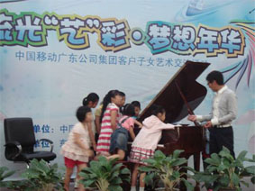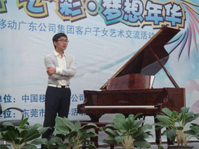 南方的夏季是多雨的季節(jié),更是變幻無常的季節(jié)!盡管5月 23-24日,東莞市連續(xù)兩天大雨傾盆,雷電交加,卻擋不住東莞琴 童家長望子成龍、望女成鳳的熱切心愿,更擋不住莞城琴童的求學 熱情。因為這兩天,中國移動廣東分公司為集團客戶子女舉辦了一 場與鋼琴大師面對面的交流活動,這次難得的交流活動,是國際鋼 琴大師趙胤胤先生與有著黃金音色美譽的德國國寶博蘭斯勒鋼琴共 同攜手為東莞市琴童及家長們舉辦的一場別開生面的鋼琴交流會 —流光“藝”彩,夢想年華!