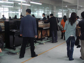 下午的15:30時(shí),全體經(jīng)銷(xiāo)商到位于廣州市白云區(qū)人和的歐 米勒鋼琴生產(chǎn)工廠-廣州市百濟(jì)實(shí)業(yè)有限公司參觀,百濟(jì)實(shí)業(yè)位于 廣州市白云區(qū)人和,工廠建筑面積1萬(wàn)多平方,分為四個(gè)生產(chǎn)車(chē)間 包括:木工車(chē)間、涂裝車(chē)間、張弦車(chē)間、總裝車(chē)間。在一樓的企業(yè) 文化墻上有一幅名為“今天你微笑了嗎?”的圖片,黃茂強(qiáng)會(huì)長(zhǎng)意 味深長(zhǎng)的說(shuō):“這個(gè)企業(yè)文化真的不錯(cuò)!值得我們其他的企業(yè)學(xué)習(xí) 一下”。在張弦車(chē)間特別為經(jīng)銷(xiāo)商介紹了德國(guó)歐米勒的鋼板和其他 鋼板的不同之處;在裝配車(chē)間特別為經(jīng)銷(xiāo)商介紹了德國(guó)歐米勒鋼琴 的制作工藝如何區(qū)別于其他鋼琴的工藝……,三樓是最后的整理車(chē) 間,工人們都在緊張的忙碌著,打包好后就直接放到旁邊的靜止倉(cāng) 。參觀后經(jīng)銷(xiāo)商都表示被歐米勒工廠的企業(yè)文化深深吸引,對(duì)博蘭 斯勒的未來(lái)市場(chǎng)更加有信心了!