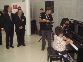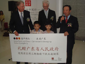 金秋11月,隨著"德中同行--走進(jìn)廣東"活動(dòng)的深入開(kāi)展,作 為"德中同行"活動(dòng)的重要組成部分,為期九天的"德國(guó)大道"活動(dòng)在 廣州市天河體育中心西門(mén)廣場(chǎng)拉開(kāi)了帷幕,并將持續(xù)至11月15日 。德國(guó)駐華大使、德國(guó)聯(lián)邦經(jīng)濟(jì)部國(guó)務(wù)秘書(shū)伯恩特·普法芬巴赫博 士、廣東省副省長(zhǎng)宋海、德國(guó)外交部對(duì)華工作小組主任"德中同 行"特使芮悟峰博士、德國(guó)駐廣州總領(lǐng)事舒涵德先生、德國(guó)博蘭斯 勒鋼琴(中國(guó))公司總經(jīng)理方陽(yáng)等德國(guó)著名企業(yè)代表就出席了開(kāi)幕式 。在開(kāi)幕式上,德國(guó)國(guó)寶博蘭斯勒鋼琴旗下的德國(guó)歐米勒阿麗莎鋼 琴被德國(guó)政府選為國(guó)禮,歐米勒鋼琴被作為德中同行的象征,由德 國(guó)政府贈(zèng)送給廣東省政府。德國(guó)駐華大使施明賢博士代表德國(guó)政府 向廣東省政府宋海副省長(zhǎng)贈(zèng)送了這一珍貴禮物。在贈(zèng)送儀式上特別 邀請(qǐng)了一對(duì)6歲的雙胞胎姐弟為現(xiàn)場(chǎng)嘉賓演奏鋼琴四手聯(lián)彈-友誼地 久天長(zhǎng),此時(shí)全場(chǎng)歡聲雷動(dòng)。