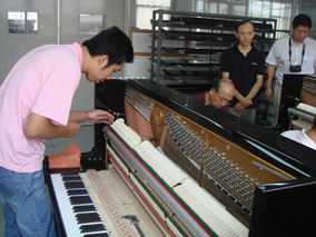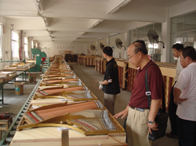 9月21日,受德國(guó)博蘭斯勒鋼琴(中國(guó))有限公司的委托,國(guó) 家輕工業(yè)樂(lè)器質(zhì)量監(jiān)督檢測(cè)中心到德國(guó)博蘭斯勒(Blüthner)在 中國(guó)的歐米勒(Irmler)鋼琴生產(chǎn)基地-廣州市百濟(jì)實(shí)業(yè)有限公司 進(jìn)行鋼琴質(zhì)量檢測(cè)。國(guó)家輕工業(yè)樂(lè)器質(zhì)量監(jiān)督檢測(cè)中心的技術(shù)人員 從近百臺(tái)歐米勒及塞勒成品鋼琴中抽出兩臺(tái)鋼琴在生產(chǎn)車間進(jìn)行現(xiàn) 場(chǎng)質(zhì)量檢測(cè),這兩臺(tái)鋼琴分別為190年紀(jì)念版歐米勒P125C鋼琴 及塞勒(Schiller)S125A鋼琴,檢測(cè)中心的技術(shù)人員依照 2002版國(guó)家標(biāo)準(zhǔn)使用先進(jìn)的檢測(cè)儀器對(duì)歐米勒鋼琴及塞勒鋼琴?gòu)?外觀、音準(zhǔn)、手感、觸鍵、調(diào)試等幾十項(xiàng)技術(shù)指標(biāo)進(jìn)行專業(yè)的檢測(cè) ,并進(jìn)行演奏測(cè)試,百濟(jì)實(shí)業(yè)生產(chǎn)的歐米勒鋼琴及塞勒鋼琴已較高 的演奏品質(zhì)順利通過(guò)國(guó)家質(zhì)量檢測(cè)并得到專家們的充分肯定。專家 檢測(cè)組對(duì)百濟(jì)實(shí)業(yè)嚴(yán)格把關(guān)產(chǎn)品質(zhì)量,給予高度贊譽(yù)。