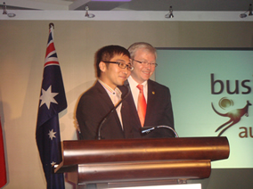 “天不怕地不怕,就怕說中國話。”這是8月8日下午澳大利亞 總理陸克文在參加澳大利亞政府下設(shè)的北京澳大利亞商務(wù)俱樂部開 幕剪彩儀式上的開場俏皮話,使現(xiàn)場氣氛頓時(shí)輕松活躍起來。會上 ,受邀參加北京2008年奧運(yùn)會的澳大利亞總理一方面預(yù)祝澳大利 亞運(yùn)動員在北京奧運(yùn)會取得好成績,一方面希望澳大利亞商務(wù)俱樂 部能架起中澳兩國交流的橋梁。