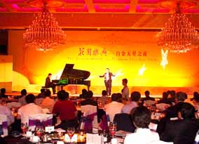 置身花園酒店的金色國際會(huì)議大廳,來賓們不僅欣賞到了博蘭 斯勒那黃金般的音色、扣人心弦的優(yōu)美旋律及精彩文藝表演,還品 嘗了豐盛的美味佳肴,獲得了全方位人文、藝術(shù)與氛圍的享受。美 食、美樂、美景融為一體,帶給貴賓們一個(gè)難忘的夜晚!
