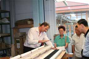 6月18日據(jù)博蘭斯勒德國(guó)總公司報(bào)道:近日琴島廈門(mén) 鼓浪嶼代 表團(tuán)一行在鼓浪嶼萬(wàn)石山風(fēng)景區(qū)管委會(huì)主任程建明的率領(lǐng)下到德國(guó) 萊比錫德國(guó)國(guó)寶博蘭斯勒總部訪問(wèn)并洽談第四屆鼓浪嶼鋼琴比賽的 各種事宜,洽談完畢在博蘭斯勒總裁博思進(jìn)博士的帶領(lǐng)下程建明一 行參觀了博蘭斯勒鋼琴生產(chǎn)線,博思進(jìn)博士并為客人介紹德國(guó)國(guó)寶 博蘭斯勒鋼琴的手工制作過(guò)程,客人紛紛贊嘆:果然名不虛傳原來(lái) 鋼琴工藝是這樣復(fù)雜精細(xì)不愧為德國(guó)國(guó)寶。