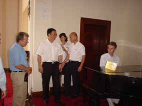 8月18日 ,博蘭斯勒 (Blüthner) 中國總經(jīng)理方揚與 德國 音樂理事會主席奎格爾、德國駐華使館文化參贊馮 · 馬丁 一行數(shù) 人參觀了青島迎賓館。青島迎賓館坐落于風景如畫的信號山南麓, 是青島“萬國建筑博覽會”的“鎮(zhèn)寶”之作,系由德國建筑師拉查 魯維茨設(shè)計。德國威廉時代的典型建筑式樣、建筑材料與青年風格 派手法和好地融合在這座經(jīng)典建筑中,即使在今天的德國本土也難 得一見。