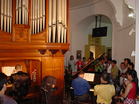 ?。常比胀黹_幕式音樂會(huì)上,來自澳大利亞的兩位著名音樂家——鋼琴家杰弗利·托薩和管風(fēng)琴演奏家瑞思·博克,聯(lián)袂演奏由法國浪漫派作曲家法蘭克和英國作曲家彼得斯所作的兩首鋼琴與管風(fēng)琴合奏作品。合奏音樂會(huì)上使用的鋼琴是鼓浪嶼鋼琴博物館珍藏的1937年的博蘭斯勒(Blüthner)鋼琴,管風(fēng)琴與鋼琴合奏,這在國內(nèi)尚屬首次。