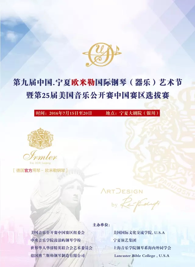 16日,由美國(guó)音樂公開賽中國(guó)賽區(qū)組委會(huì)、中央音樂學(xué)院鼓浪嶼鋼琴學(xué)校、寧夏演藝集團(tuán) 、上海音樂學(xué)院鋼琴系海內(nèi)外同學(xué)會(huì)、世界華人華僑精英聯(lián)合會(huì)藝術(shù)委員會(huì)、德國(guó)博蘭斯勒鋼琴(中國(guó))有限公司聯(lián)合主辦的——第九屆中國(guó)·寧夏歐米勒國(guó)際鋼琴藝術(shù)節(jié)暨第25屆美國(guó)音樂公開賽中國(guó)賽區(qū)選拔賽正式在著名的西夏古都、“塞上江南”美麗的寧夏銀川拉開帷幕。