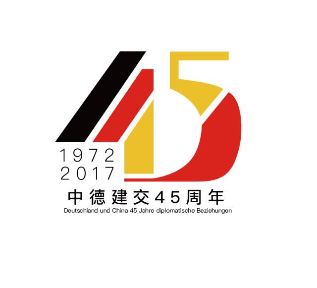 大大的數(shù)字“45”分別用中德兩國國旗的顏色組成,