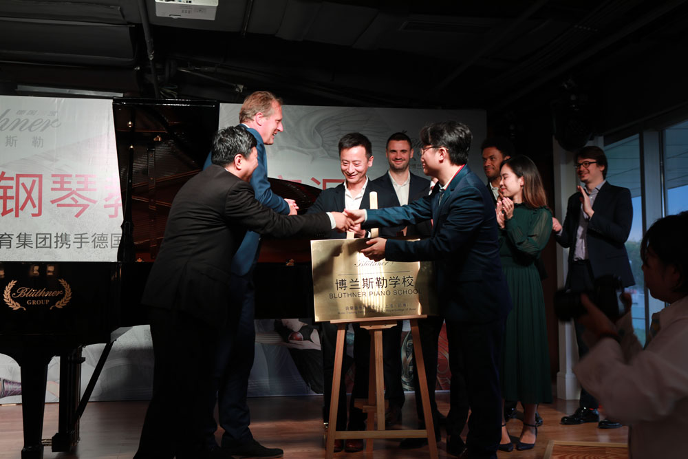 音皇音樂(lè)教育集團(tuán)校長(zhǎng),著名青年鋼琴家李成偉先生; 音皇音樂(lè)教育集團(tuán)聯(lián)合創(chuàng)始人,著名雙簧管演奏家,黃錚博士; 音皇音樂(lè)教育集團(tuán)聯(lián)合創(chuàng)始人余戌東先生;德國(guó)博蘭斯勒集團(tuán)總裁克里斯蒂安·博蘭斯勒博士;德國(guó)博蘭斯勒中國(guó)區(qū)總裁方陽(yáng)出席了授牌儀式并在嘉賓們的祝福中,共同為“博蘭斯勒鋼琴學(xué)?!苯遗疲?